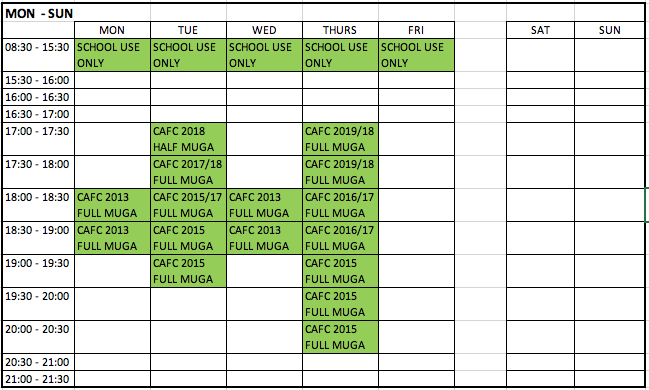 Sports Area Calendar